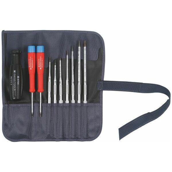 Schraubenzieher-Set mit Wechselklingen in kompakter Rolltasche