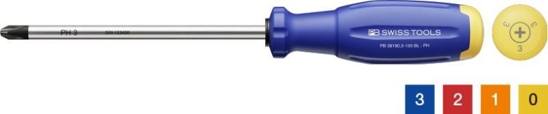 • Color Code, laser engraving on the end of the handle – quick identification of screw profile and size