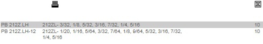 Size ZH-12 / ZLH-12 / 1/20, 1/16, 5/64, 3/32, 7/64, 1/8,